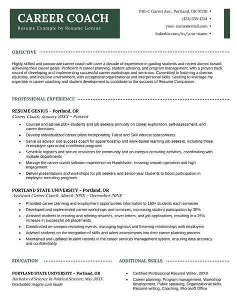 5. In addition to crafting exceptional resumes, the Resume Writer Career Coach serves as a mentor and guide. They provide valuable career advice, helping individuals navigate the job market with confidence. With their support, job seekers can identify their goals, develop strategies, and make informed decisions that can shape their professional journey.